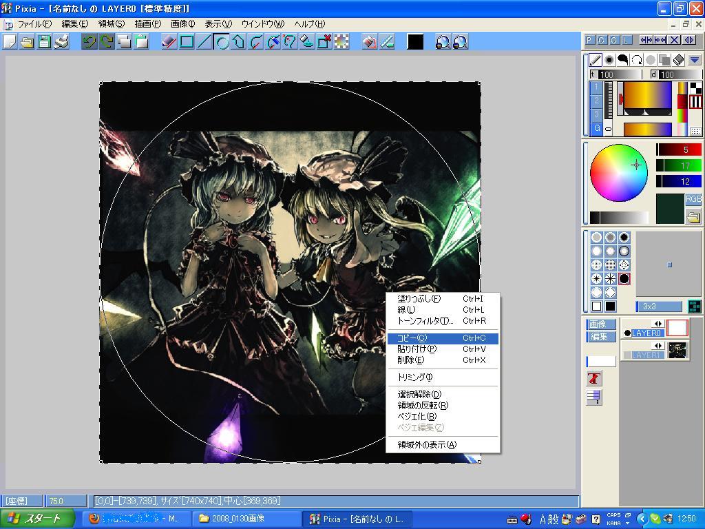 ①まず、Pixiaで自分が時計にしたい画像をファイルから開きます。