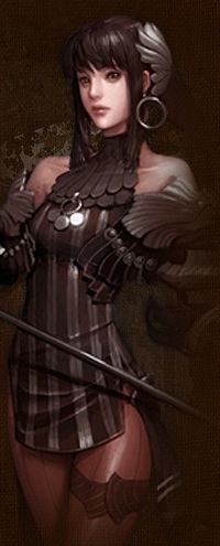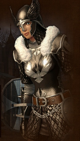 剣と盾、または鎚と盾の組み合わせを扱うことが出来る女性キャラクター。