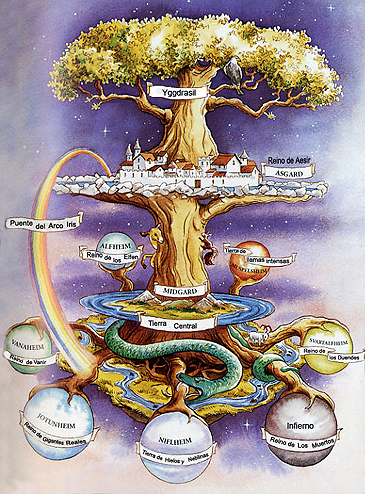 北欧神話の世界では地球は一本の木に支えられている円盤であり、その巨大な樹木がユグドラシルという名なのです。