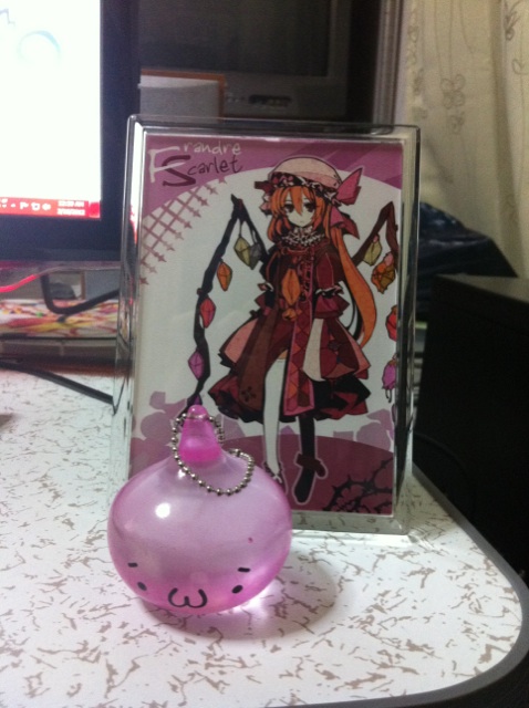 ふらんちゃんフォトフレームと、なんか(´・ω・`)ショボーンのぷにぷにしたやつ。