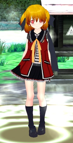 ブラウスをノースリーブに差し替え、リボンを取っ払い、スカートも装飾の少ない物に、ヘッドフォンも肉抜きしたBタイプを使用して、軽さと活発な印象を出したかった。