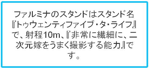 やってもらえばわかるかと思いますが、あの有名な「ジョジョの奇妙な冒険」の、まぁ所謂特殊能力のことをスタンド、と作中では呼称しているのですが、入力した人物のスタンドを勝手に作ってくれるというものです。