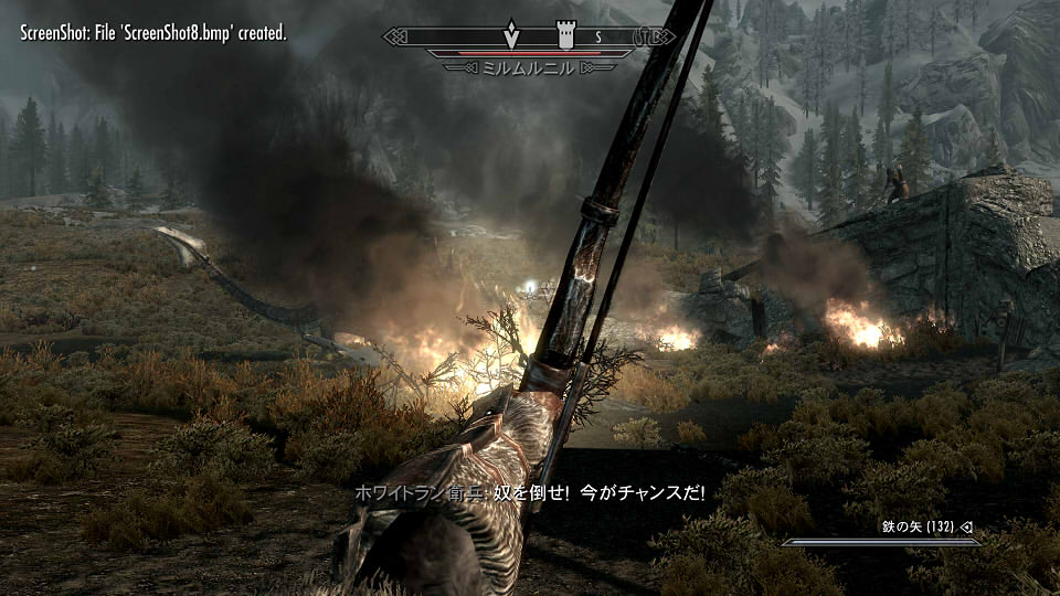 ベセスダのゲームの自由度は半端じゃないので、別に帝国を裏切ったり、傭兵団に所属したり、盗賊ギルドに入ったり、それこそ木こりとして生きていくことも出来るわけですが、一周目でそれやるとシナリオの全貌が把握できないのでガマン!