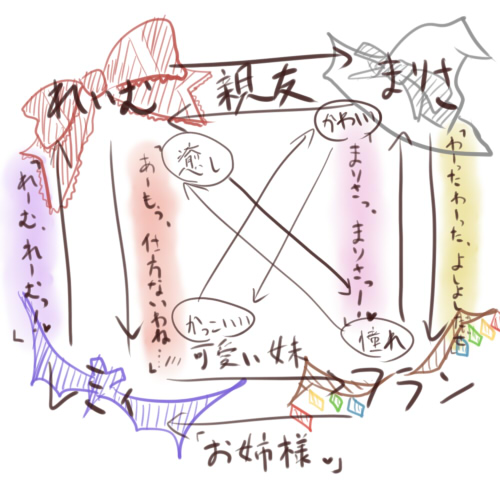 フランちゃんが魔理沙の手をひっぱってく。魔理沙が苦笑いでそのままついてく。