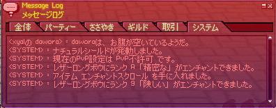 ってことでダンバ1chで顔なじみのエンチャ師さんを見つけたので、営業開始直後にやってもらいました。