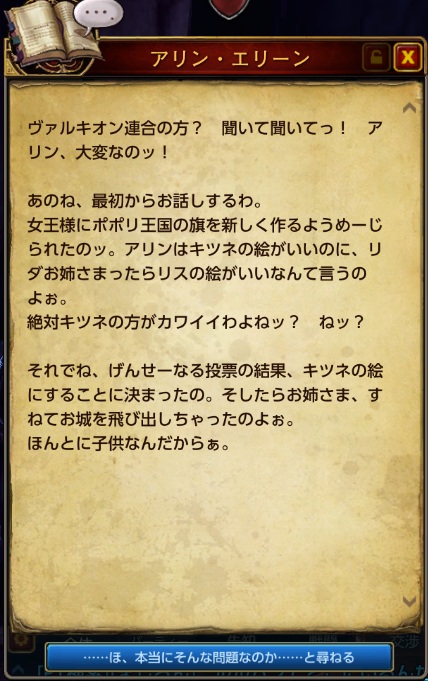一応世界の危機っぽい話のはずなんですが、ここら一帯のクエは基本的にほのぼのしてていいですね。