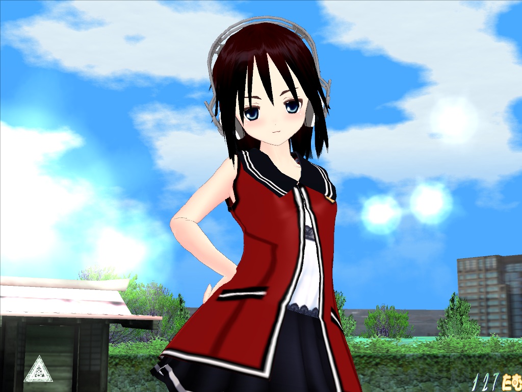 ブラウスをノースリーブに差し替え、リボンを取っ払い、スカートも装飾の少ない物に、ヘッドフォンも肉抜きしたBタイプを使用して、軽さと活発な印象を出したかった。