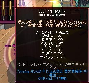 - 【通 常】ダメージ0~73, クリティカル30%, バランス21%, 耐久7